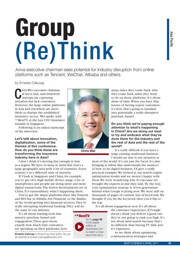 Group (Re) Think : [interview to] Chris Wei, executive chairman at Aviva Asia