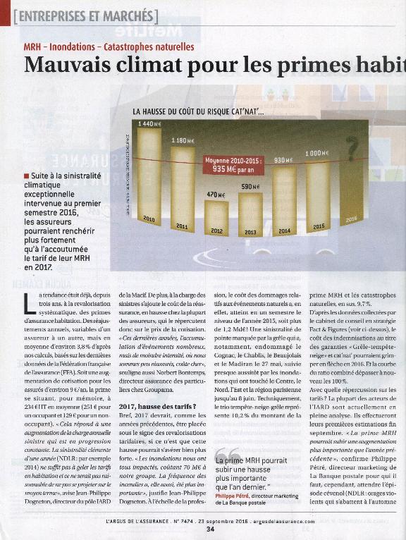 En: L'Argus de l'assurance. - Paris : Groupe Industrie Services Info, 1983- = ISSN 1626-4428. - 23/09/2016 Número 7474 - 23 septiembre 2016 , p. 34-35