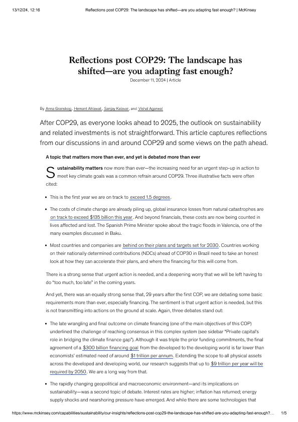Reflections post COP29 : the landscape hasshiftedare you adapting fast enough?