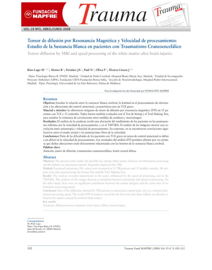 - En: Trauma : (fusión de la revista MAPFRE Medicina y la revista Patología del Aparato Locomotor). - Madrid : FUNDACION MAPFRE, Instituto de Prevención, Salud y Medio Ambiente, 2008-2015 = ISSN 1888-6116. - 01/04/2008 Volumen 19 Número 2 - abril 2008 , p. 102-112