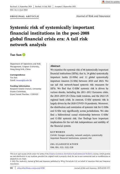 • En: The Journal of risk and insurance. - Nueva York : The American Risk and Insurance Association, 1964- = ISSN 0022-4367. - 17/11/2025 Volumen 92 Número 4 - noviembre 2025 , p. 950 - 977