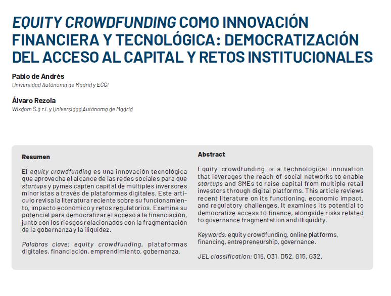 Equity crowdfunding como innovación financiera y tecnológica : democratización del acceso al...