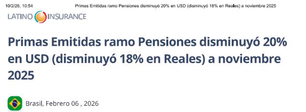 En: Latino Insurance. - 21 de fevereiro, 2026 ; 2 p.