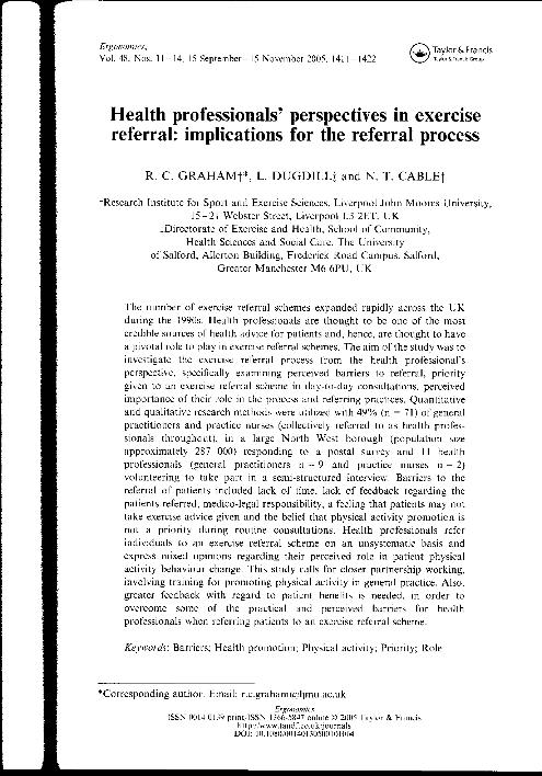 Health professionals' perspectives in exercise referral : implications for the referral process