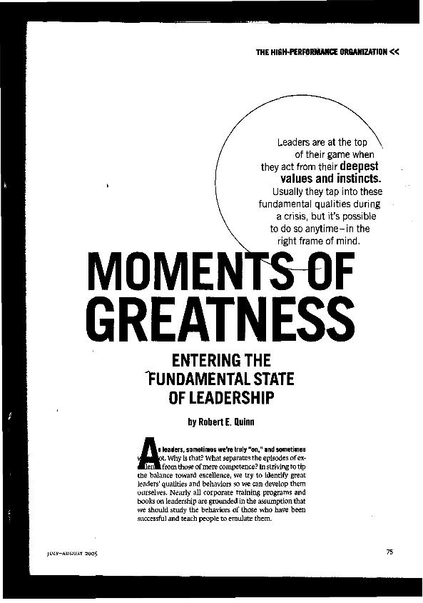 Moments of greatness : entering the fundamental state of leadership