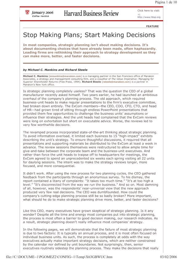 Stop making plans : start making decisions