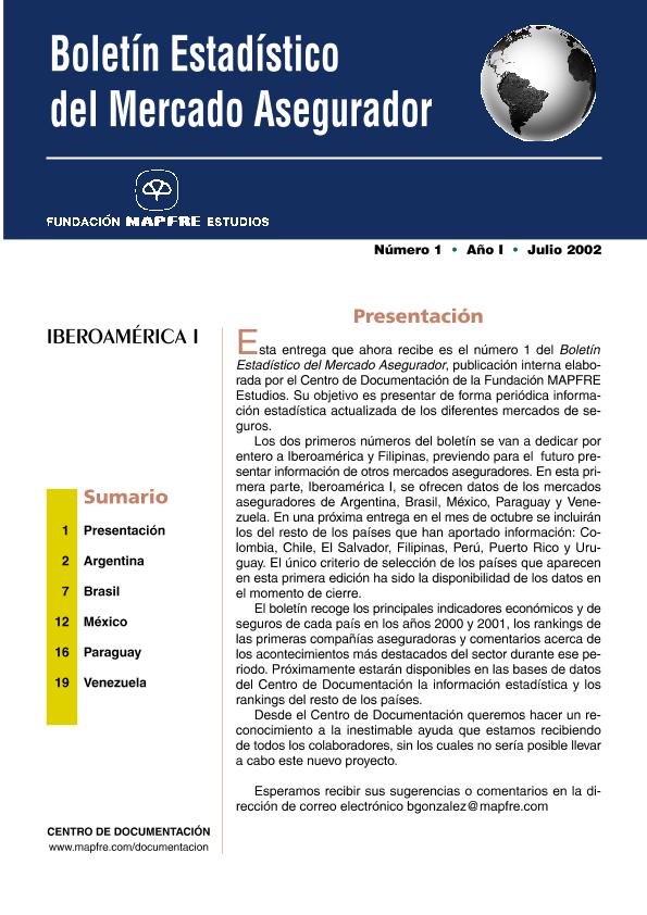 Boletín estadístico del mercado asegurador : Iberoamérica I