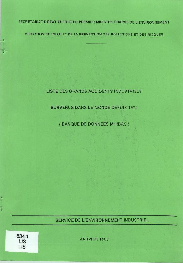 Inventaire des accidents industriels et pollutions accidentelles en 1989