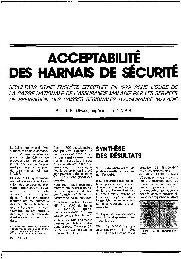 Acceptabilité des harnais de sécurité
