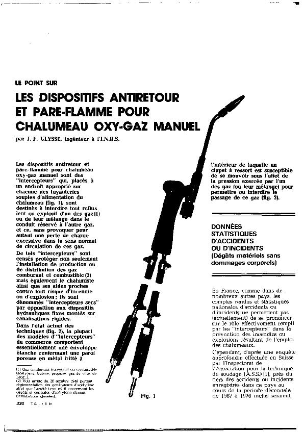 Les Disposisitifs antiretour et pare-flamme pour chalumeau oxy-gaz manuel