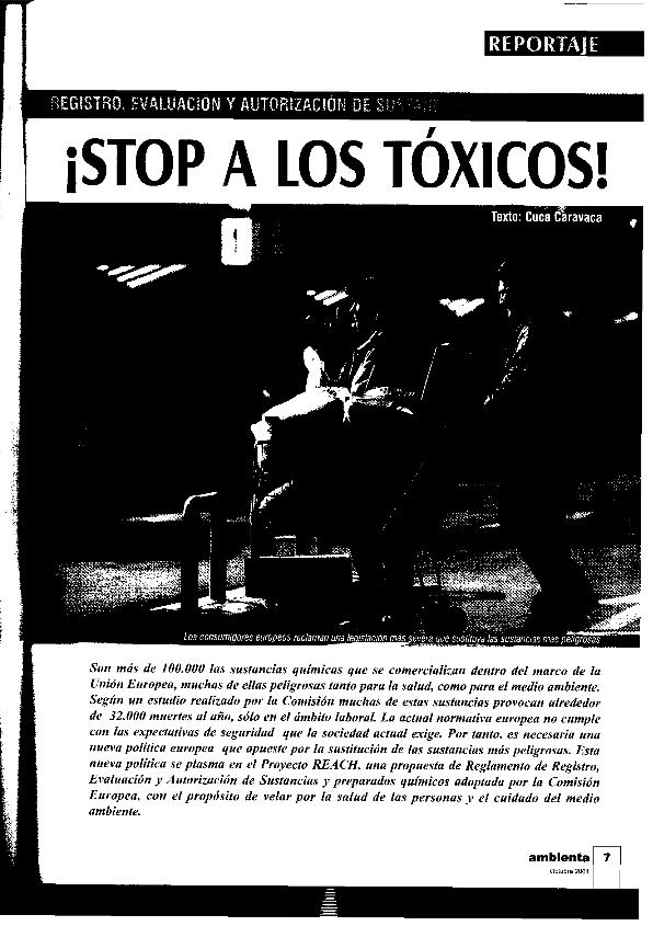 ¡Stop a los tóxicos! : registro, evaluación y autorización de sustancias químicas (REACH)