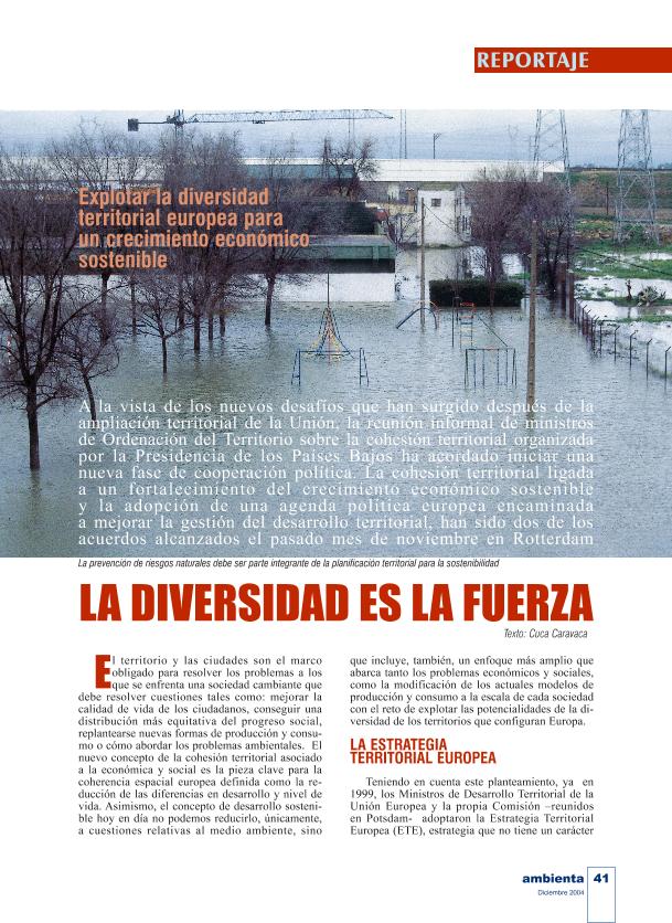 En: Ambienta. - Madrid : Ministerio de Medio Ambiente y Medio Rural y Marino, 2002- = ISSN 1577-9491. - 11/01/2004 Número 39 - Mes Diciembre