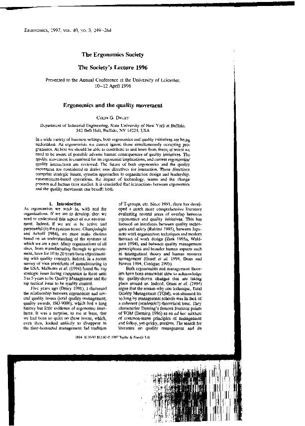 Ergonomics and the quality movement