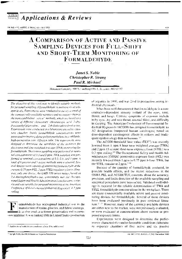 A Comparison of active and passive sampling devices for full-shift and short-term monitoring of...