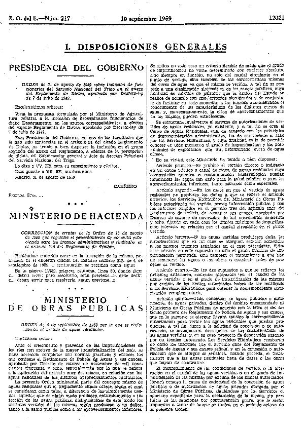 - En: . - B.O.E. núm. 217, de 10 septiembre 1959