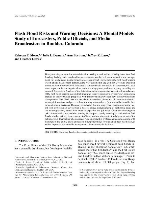 Flash flood risks and warning decisions : a mental models study of forecasters, public officials,...