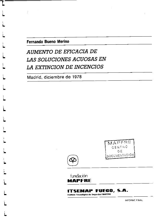 Seção: Documentos eletrônicosTítulo: Aumento de eficacia de las soluciones acuosas en la extinción de incendios : Madrid, diciembre de 1978 / Fernando Bueno MerinoAutor: Bueno Merino, FernandoPublicação: Madrid : FUNDACIÓN MAPFRE : ITSEMAP Fuego, 1978Descrição física: 25 p.Notas: Fundación MAPFRE E ITSEMAP FUEGOMateria / lugar / evento: Agentes extintoresExtinción de incendiosBecasOtros autores: Fundación MAPFRE ITSEMAP Fuego Outras classificações: 812.4Direitos: In Copyright (InC)