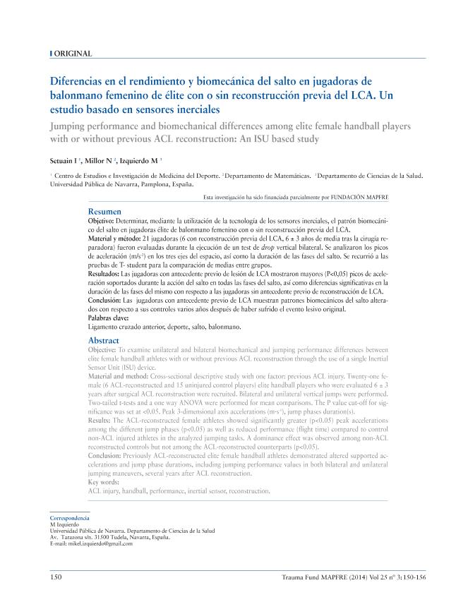 • En: Trauma : (fusión de la revista MAPFRE Medicina y la revista Patología del Aparato Locomotor). - Madrid : FUNDACION MAPFRE, Instituto de Prevención, Salud y Medio Ambiente, 2008-2015 = ISSN 1888-6116. - 01/07/2014 Volumen 25 Número 3 - Julio 2014 , p. 150-156
