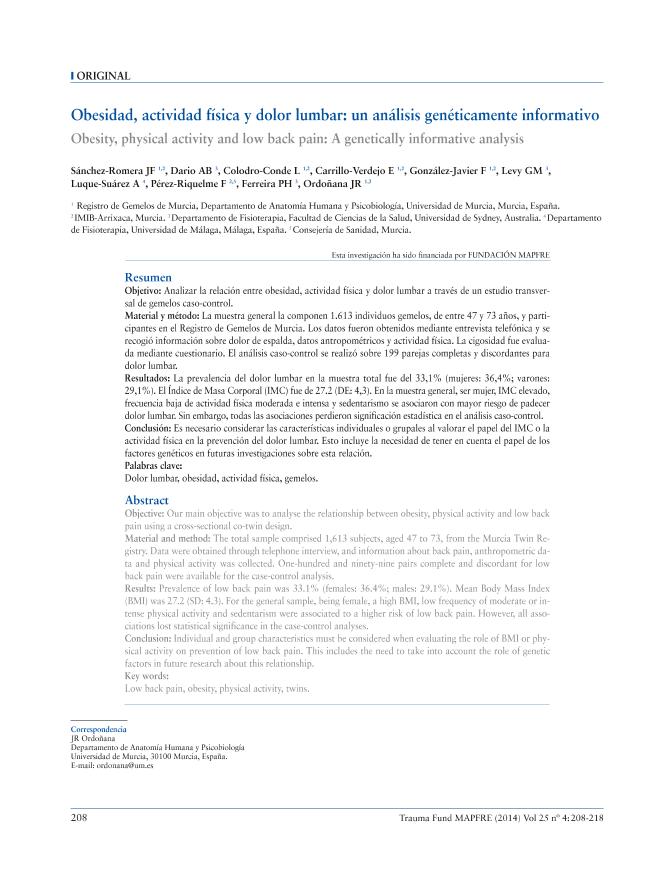 Obesidad, actividad física y dolor lumbar : un análisis genéticamente informativo = Obesity,...