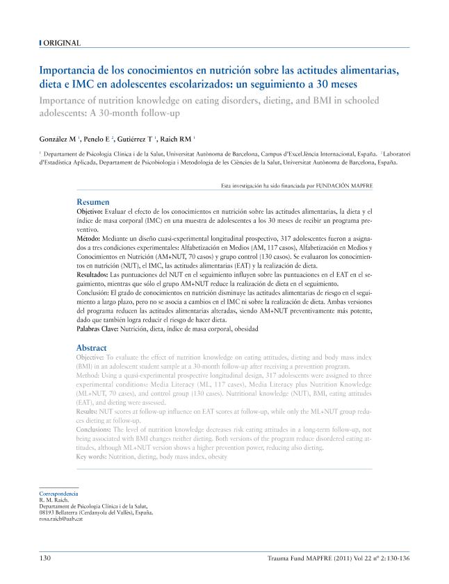 Prevención de los trastornos de la conducta alimentaria en la escuela : evaluación a los dos años