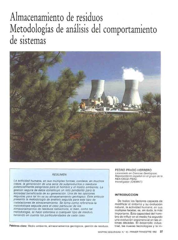 Almacenamiento de residuos : metodologías de análisis del comportamiento de sistemas
