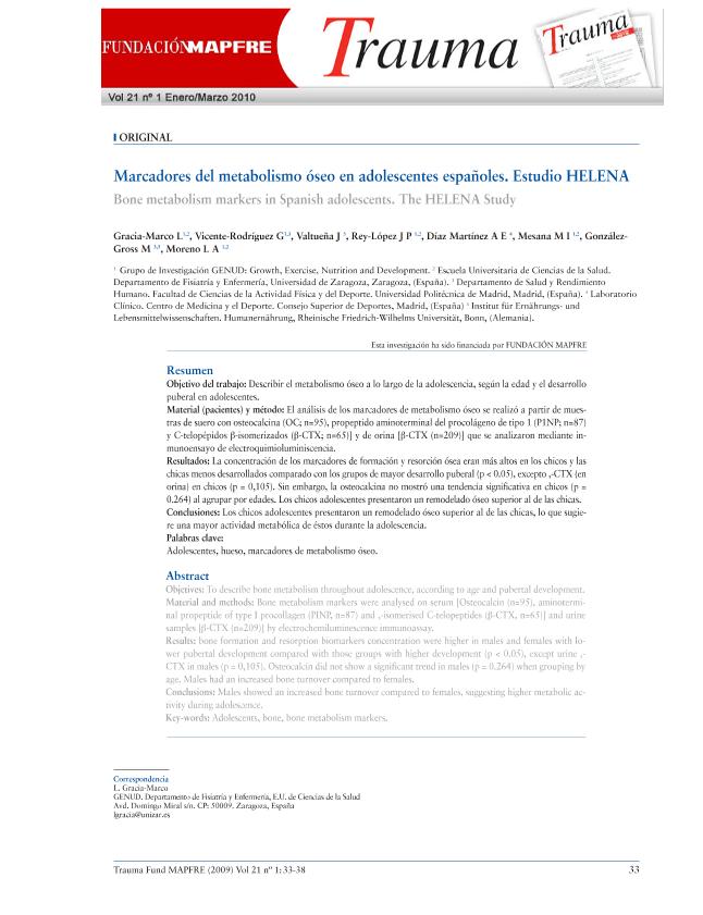 • En: Trauma : (fusión de la revista MAPFRE Medicina y la revista Patología del Aparato Locomotor). - Madrid : FUNDACION MAPFRE, Instituto de Prevención, Salud y Medio Ambiente, 2008-2015 = ISSN 1888-6116. - 01/01/2010 Volumen 21 Número 1 - enero 2010 , p. 33-38