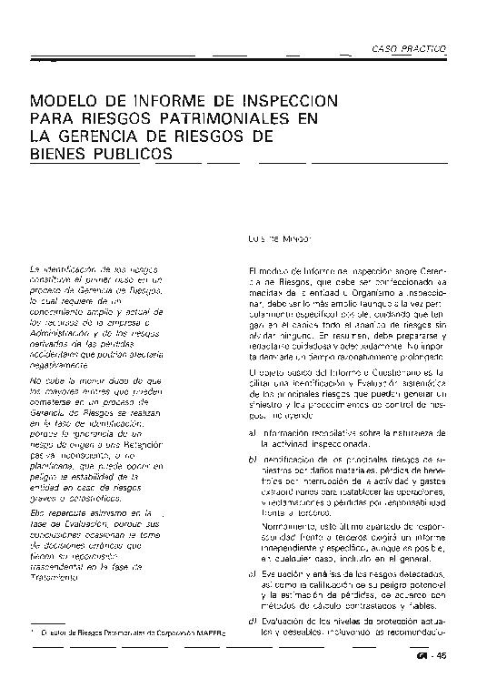 Modelo de informe de inspección para riesgos patrimoniales en la gerencia de riesgos de bienes...