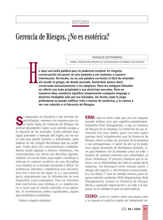 - En: Gerencia de riesgos. - Madrid : Fundación MAPFRE Estudios. - nº 88, 4º trimestre 2004 ; p. 51-56
