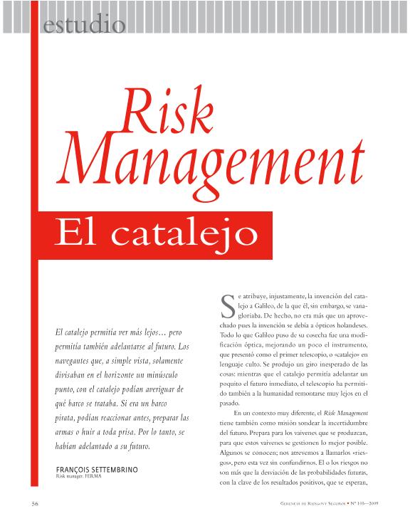 - En: Revista Gerencia de Riesgos y Seguros. - Madrid : Fundación MAPFRE Estudios, 1983-2014. - Número 105 - 3 2009, p. 56-60
