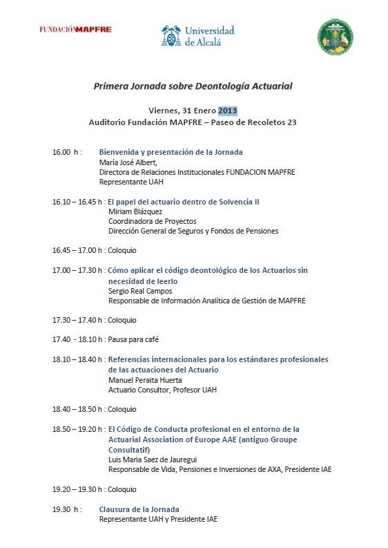 1ª Jornada sobre Deontología Actuarial : 31 de enero de 2014