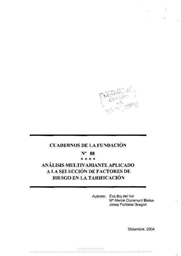 Análisis multivariante aplicado a la selección de factores de riesgo en la tarificación