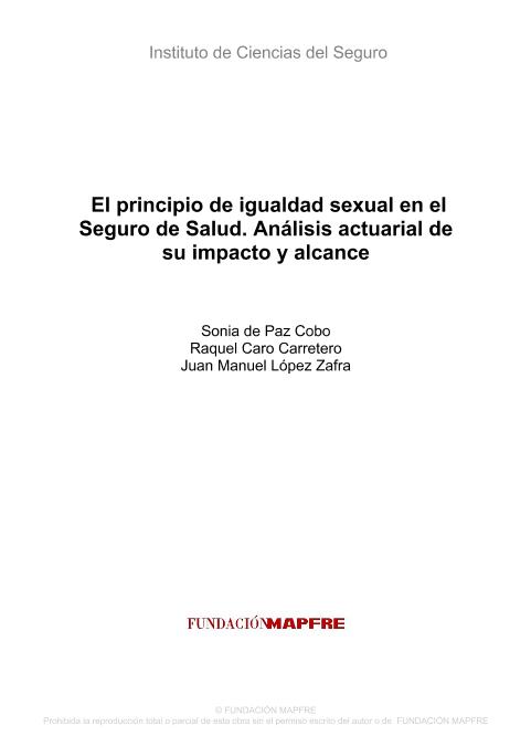 El Principio de igualdad sexual en el seguro de salud. Análisis actuarial de su impacto y alcance