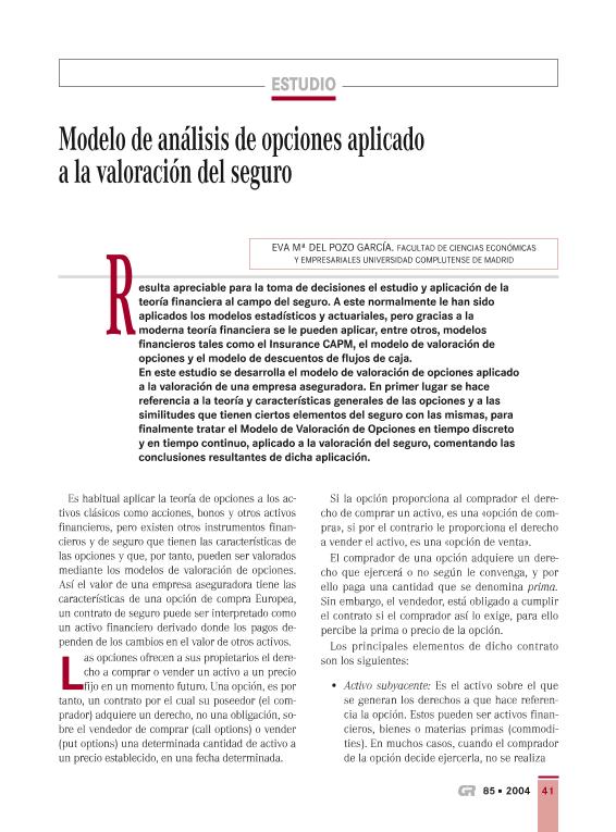 Modelo de análisis de opciones aplicado a la valoración del seguro