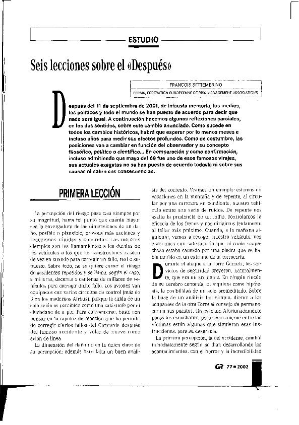 - En: Gerencia de riesgos y seguros. - Madrid : Fundación MAPFRE Estudios. - nº 77, 1er trimestre 2002 ; p. 41-46