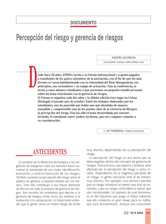 - En: Gerencia de riesgos y seguros. - Madrid : FUNDACION MAPFRE, Instituto de Ciencias del Seguro. - nº 93, 1er. trimestre 2006 ; p. 43-49