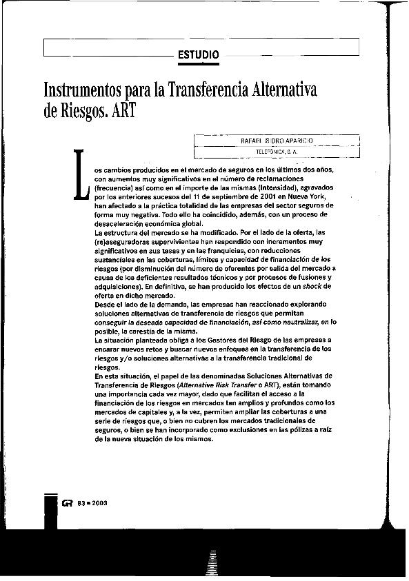 - En: Gerencia de riesgos y seguros. - Madrid : Fundación MAPFRE Estudios. - nº 83, 3er trimestre 2003 ; p. 18-36