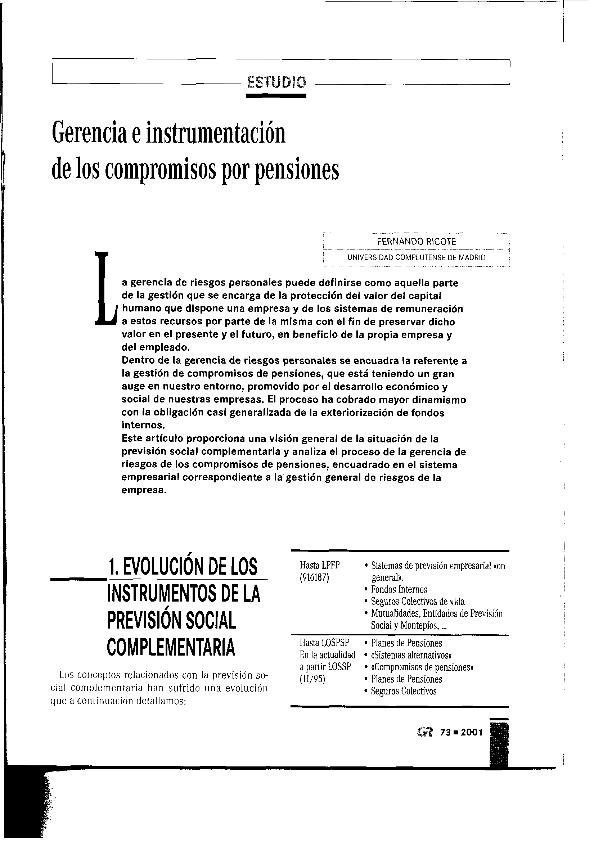 Gerencia e instrumentación de los compromisos por pensiones