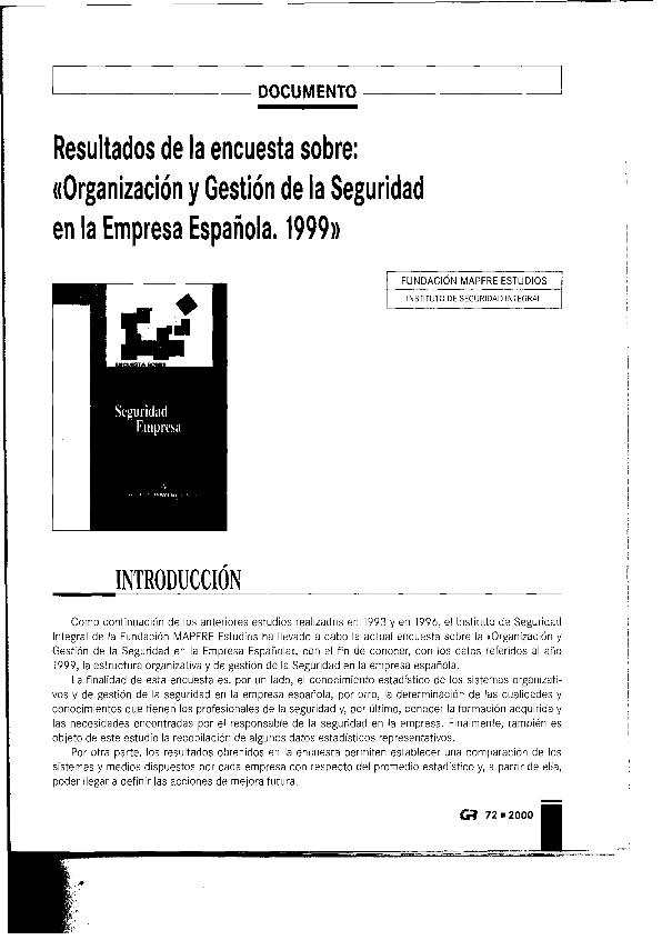 Resultados de la encuesta sobre : organización y gestión de la seguridad en la empresa española....
