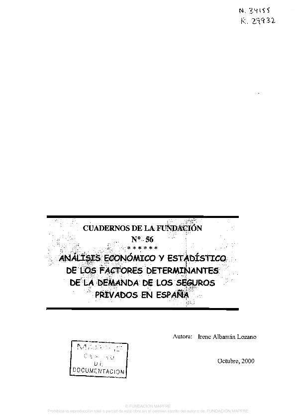 Análisis económico y estadístico de los factores determinantes de la demanda de los seguros...