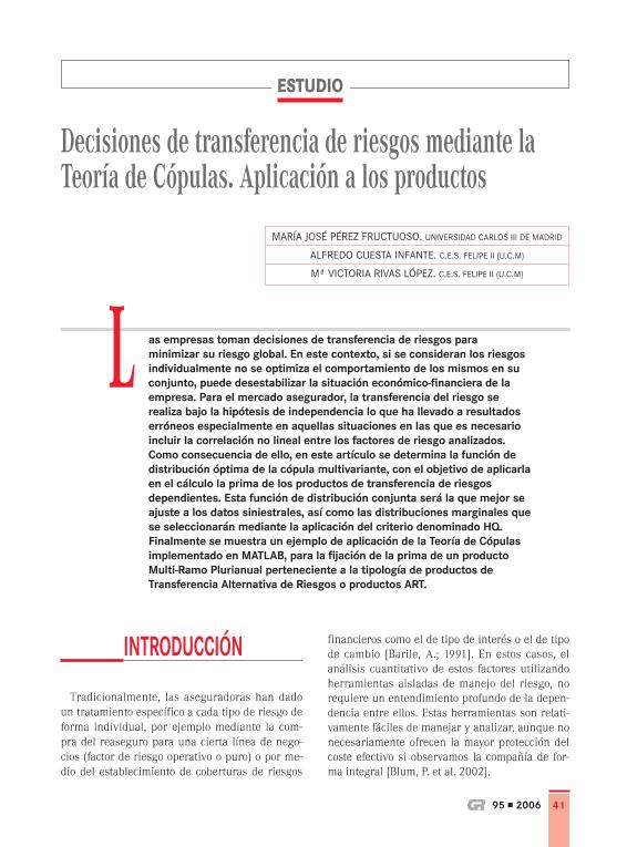Decisiones de transferencia de riesgos mediante la teoría de cópulas. Aplicación a los productos