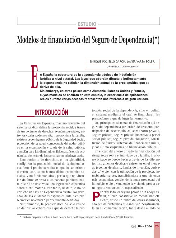 - En: Gerencia de riesgos y seguros. - Madrid : Fundación MAPFRE Estudios. - nº 86, 2º trimestre 2004 ; p. 25-38