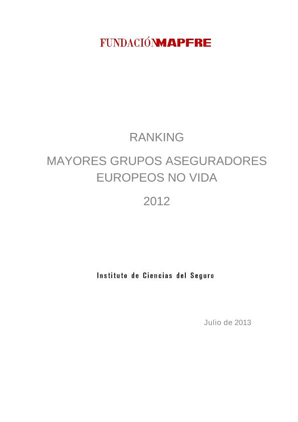 Ranking mayores grupos aseguradores europeos No Vida 2012