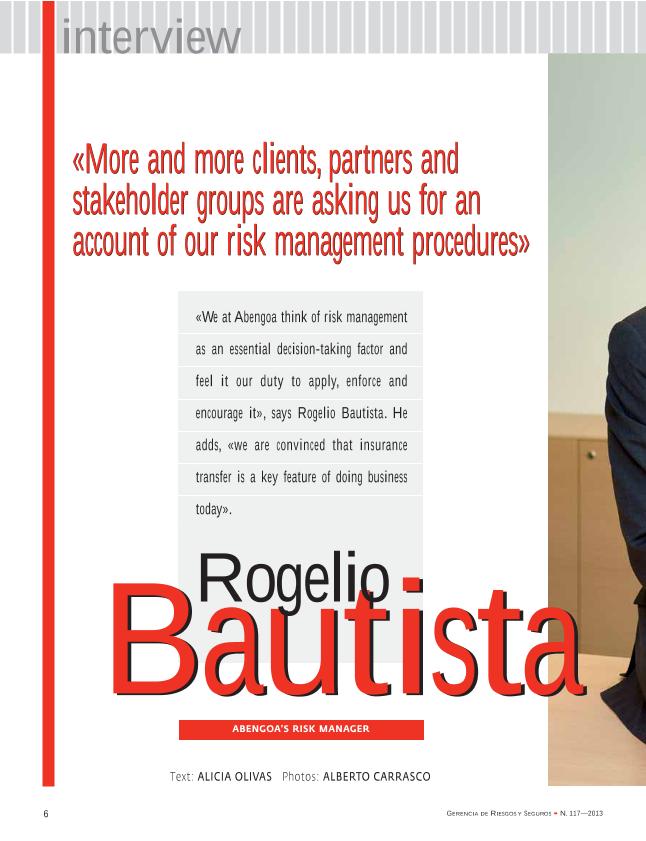 Rogelio Bautista, Gerente de Riesgos de Abengoa : "cada vez son más los clientes, socios y grupos de interés que piden explicaciones sobre gestión de riesgos" = Rogelio Bautista, Abegoa's Risk Manager : "more and more clients, partners and stakeholder gro