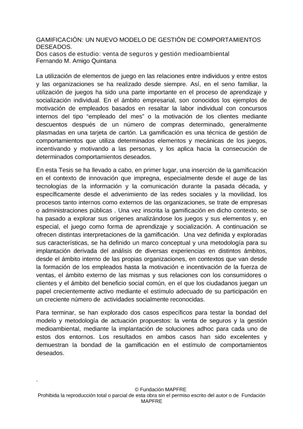 Gamificación : un nuevo modelo de gestión de comportamientos deseados. Dos casos de estudio: venta de seguros y gestión medioambiental