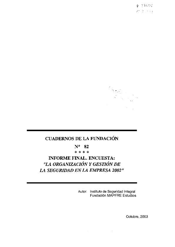 La Organización y gestión de la seguridad en la empresa 2002 : informe final. Encuesta