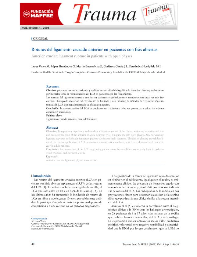 Roturas del ligamento cruzado anterior en pacientes con fisis abiertas