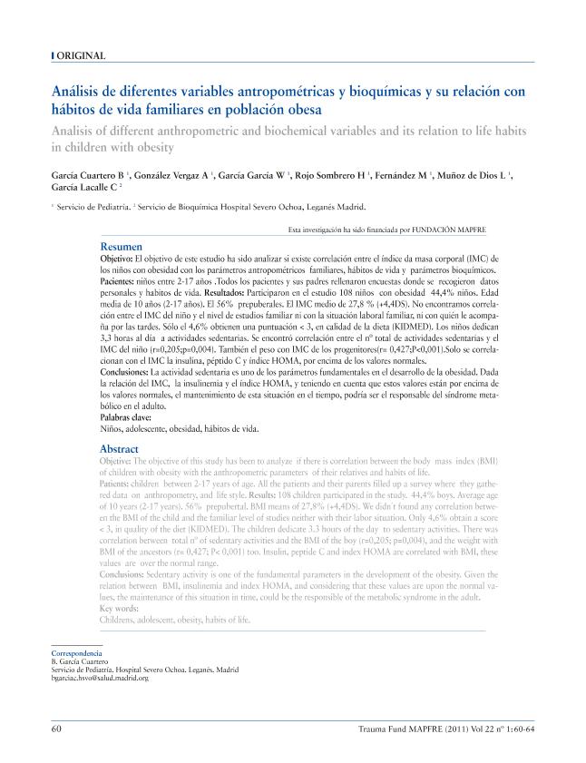 Análisis de diferentes variables antropométricas y bioquímicas y su relación con hábitos de vida...