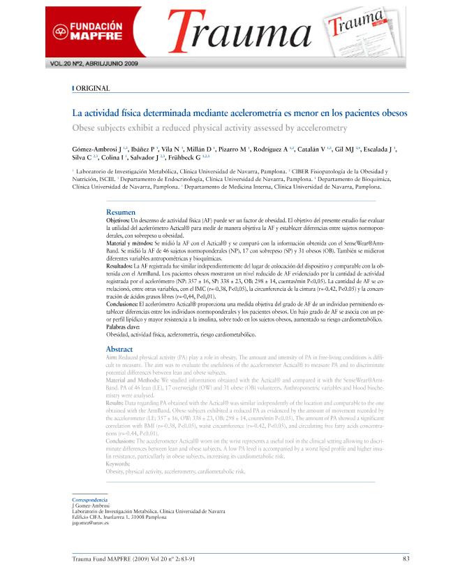 La Actividad física determinada mediante acelerometría es menor en los pacientes obesos