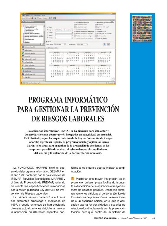 • En: Mapfre seguridad. - Madrid. - nº 100, 4º. trimestre 2005 ; p. 45-47