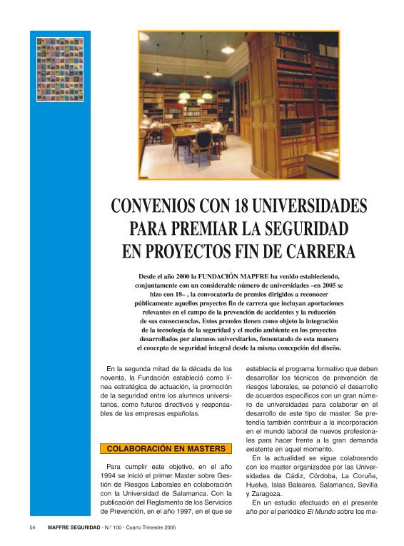 Convenios con 18 universidades para premiar la seguridad en proyectos fin de carrera : educación...